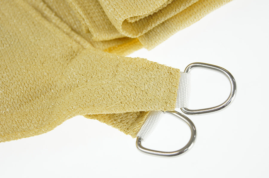 This shade sail is constructed using high-quality stitching, which includes visible seams. The seams enhance durability and ensure long-lasting performance. Images are for illustration purposes only.