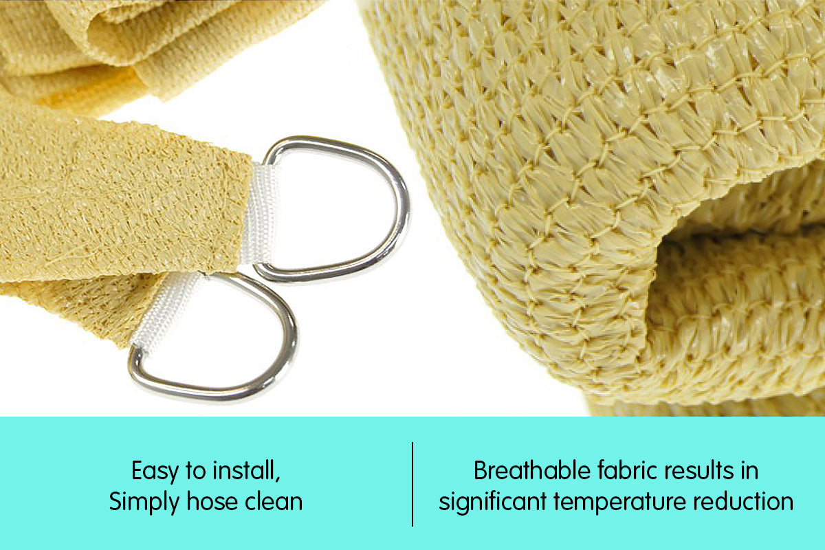 These shade sails offer the utmost in convenience they are easy to install, and clean off with the hose. Suitable for covering patios, courtyards, playgrounds, and parking lots, etc.