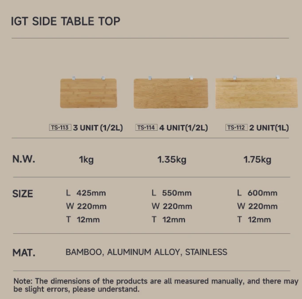 Outdoor Kitchen System Module: Enhance your outdoor cooking and dining experience with the IGT Side Table Top. This innovative module is designed to complement your camping or picnic setup, providing a versatile surface for meal preparation, dining, or other outdoor activities.