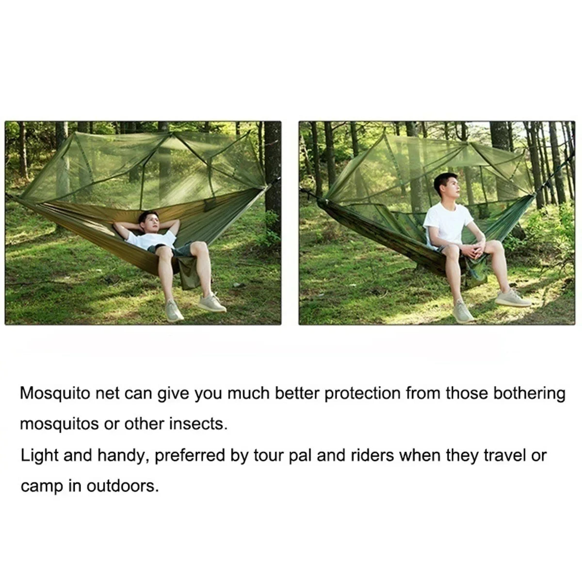 - Complete Package: The package includes 1 Hammock with Mosquito Net, 2 Hooks, 1 Inner Bag, 1 Outer Bag, and 2 Mosquito Net Ropes, providing everything you need for a convenient setup.