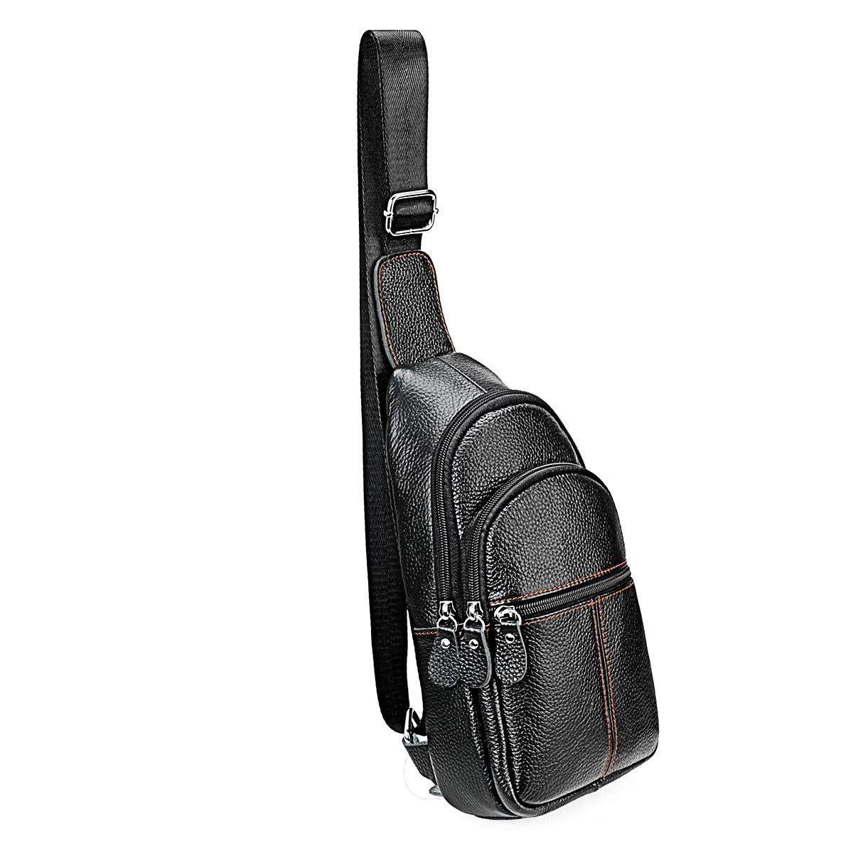 NNEDSZ Stylish Genuine Leather Crossbody Chest Bag For Men And Women Functional And Versatile Design - Black