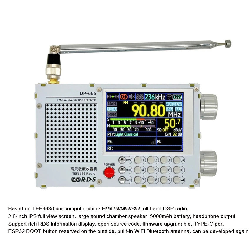 Experience a new generation of radio performance with the High Sensitivity Full Band FM/AM/Shortwave Receiver. Powered by the advanced ESP32-WROOM-32U chip, this device combines wireless connectivity, efficient signal processing, and intelligent control for seamless operation. Its 2.8-inch IPS full-view touch display ensures easy tuning and clear visual feedback, while the precision knob and keypad offer a classic control feel.