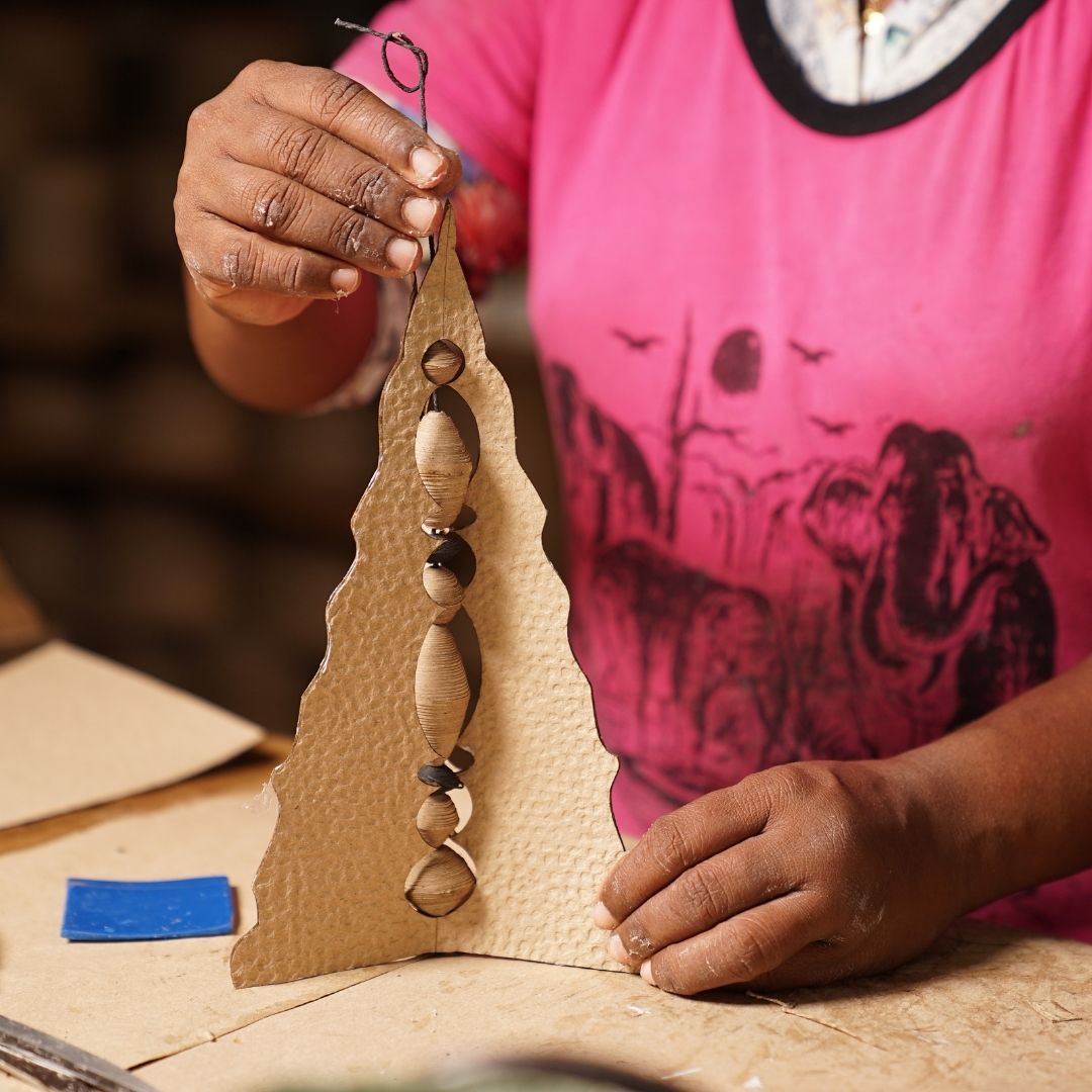 Each tree is delicately handcrafted by our strong team of Sri Lankan mothers who are empowered and work from home to earn and support their families.