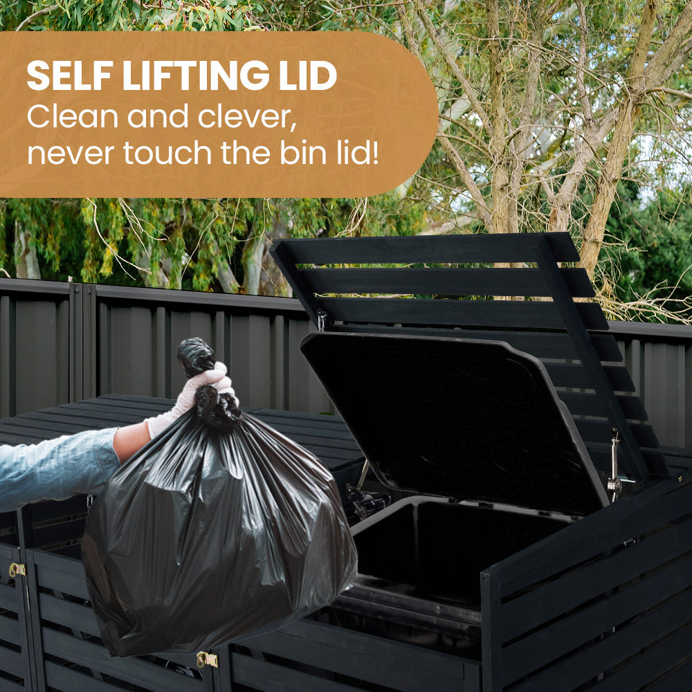 - AUTO OPENING DESIGN: Chains attach to bin handles to open the bin when you open the enclosure lid