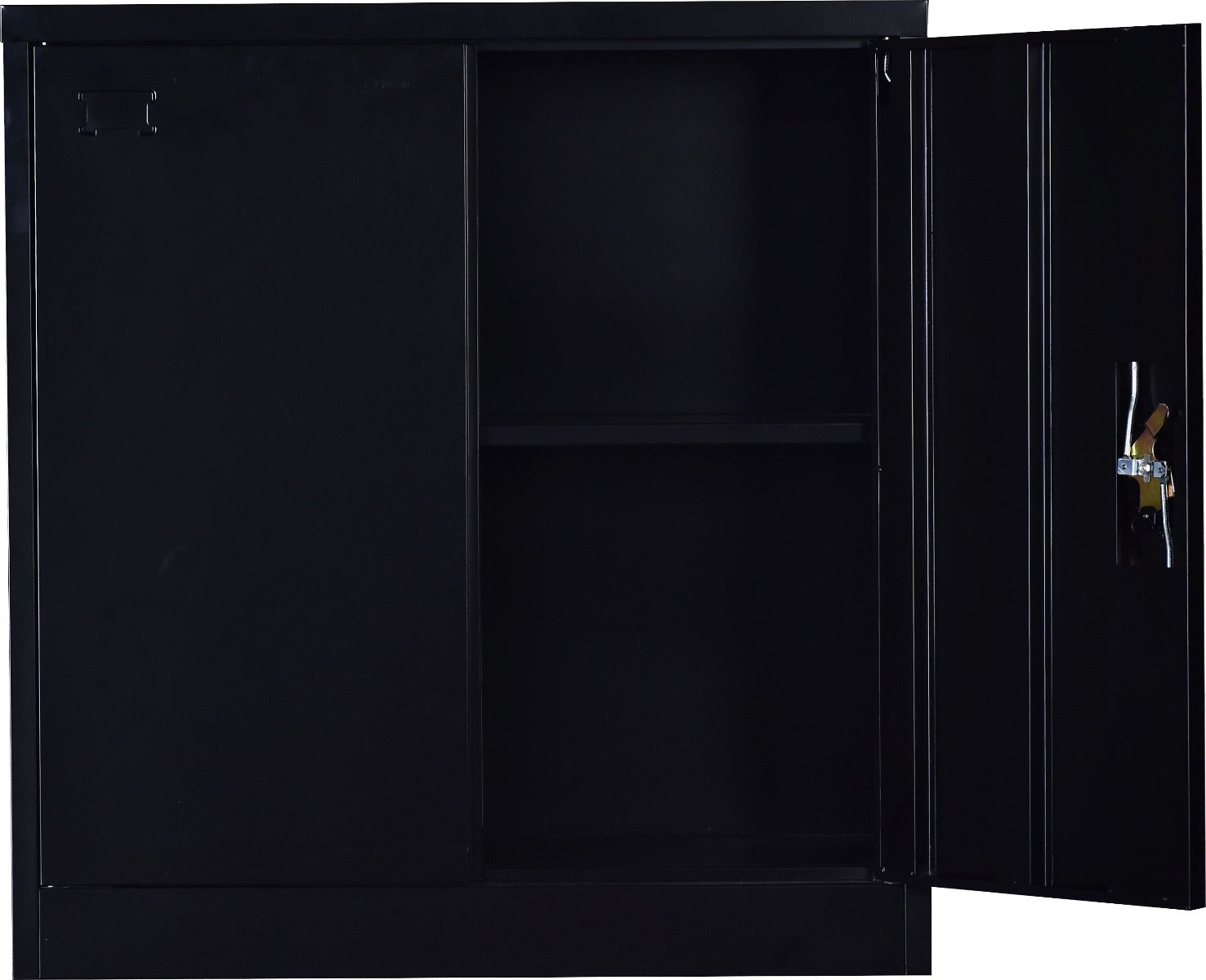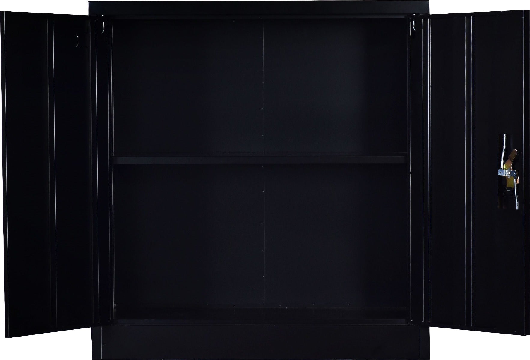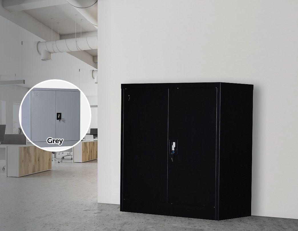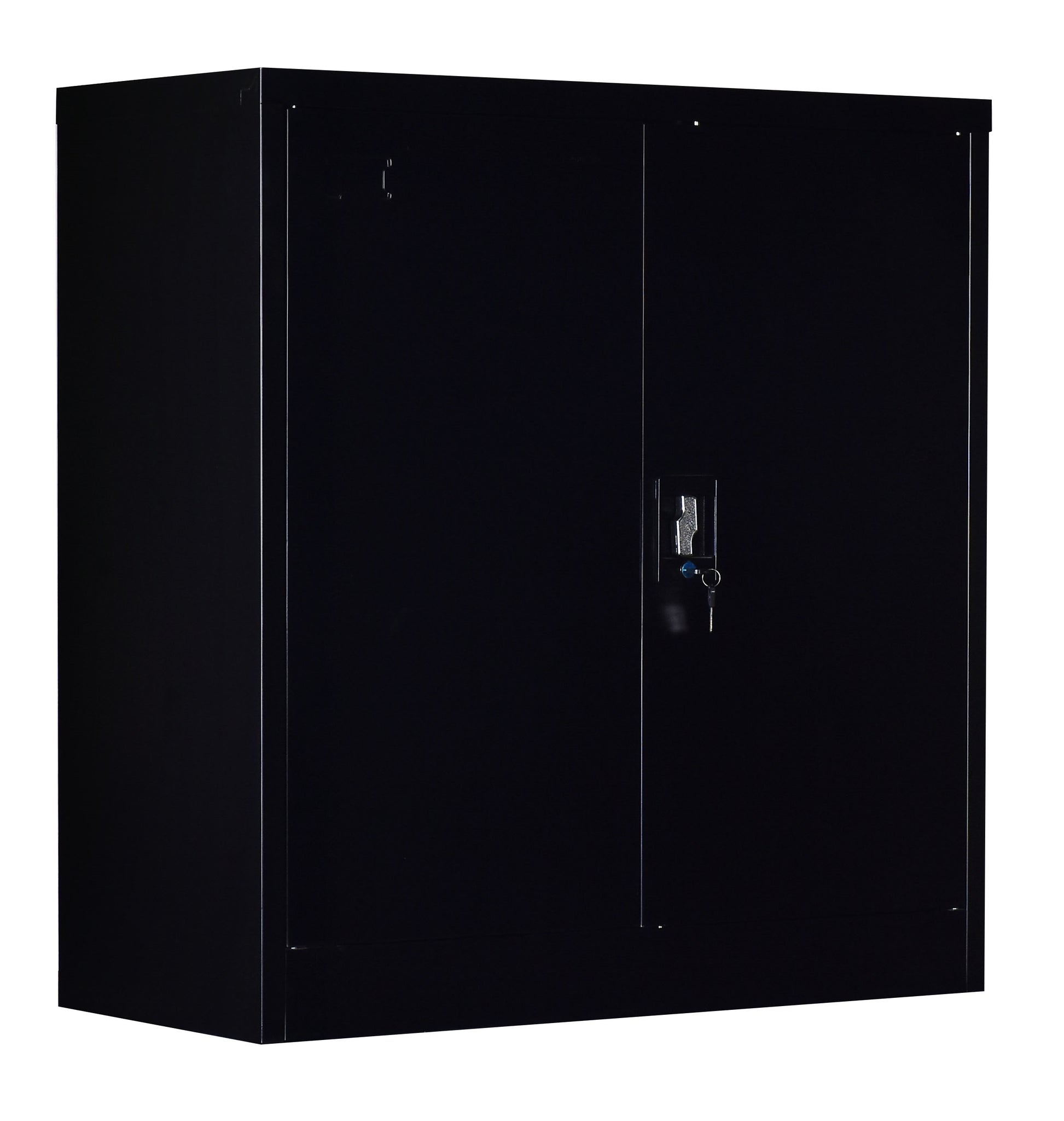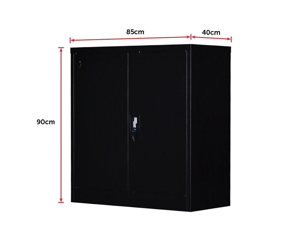 The cabinet is constructed with solid cold-rolled steel plate for excellent sturdiness and durability, not to mention an attractive look. The steel is also powder-coated to resist corrosion. The cabinet measures 90 x 85 x 40 cm, and the maximum recommended weight capacity is approximately 40kg per shelf.. Privacy and security are assured with a simple lock and key design on the double doors. The lock comes with 2 keys.