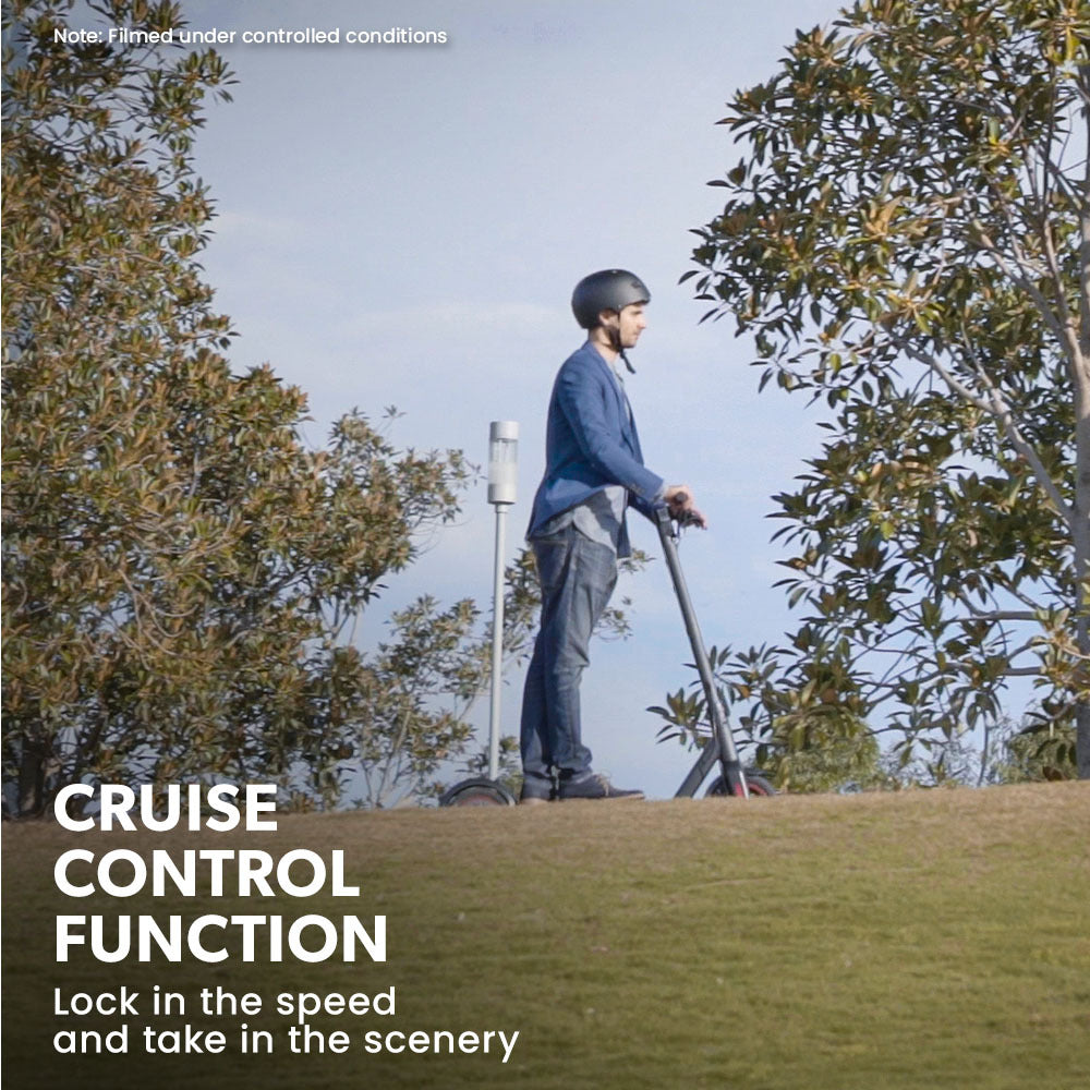 The large 8.5-inch tyres with internal honeycomb technology ensure a smooth ride, predictable handling and the benefit of never risking a puncture or requiring refilling with air!