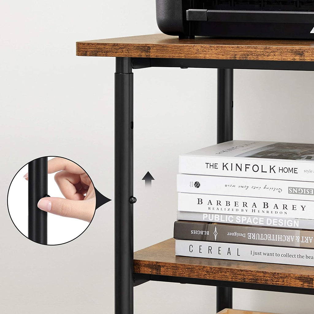 NNEDSZ 3-Tier Machine Cart with Wheels and Adjustable Table Top Rustic Brown and Black OPS003B01