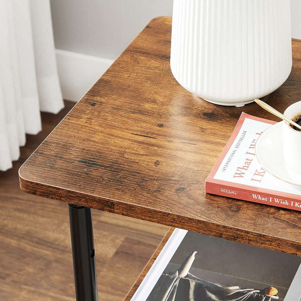 Wheels and Adjustable Table Top Rustic Brown and Black