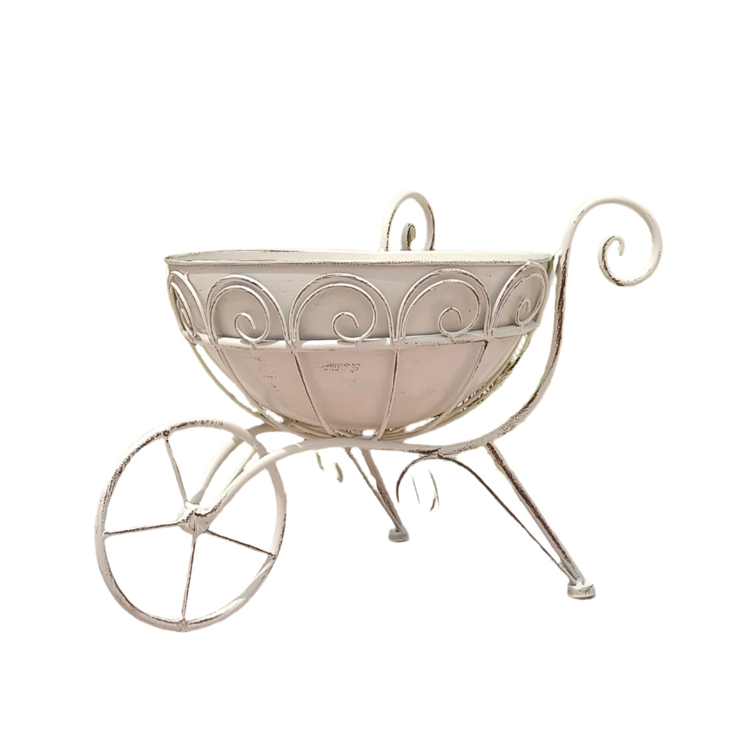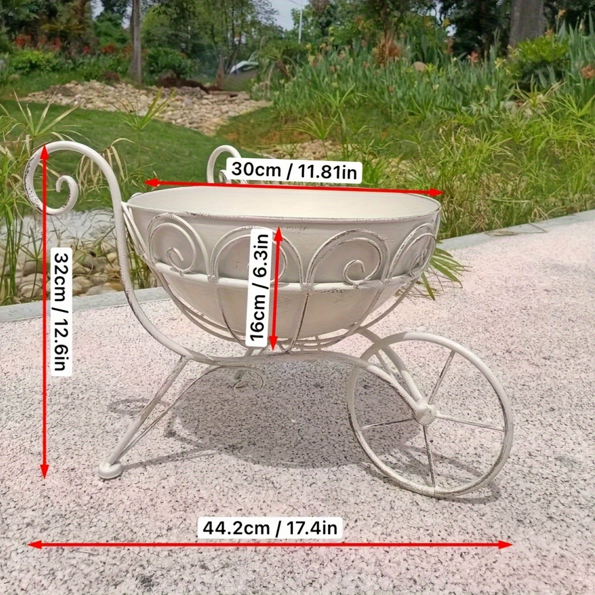 The NNETM Vintage Iron Garden Cart Planter is a functional accent piece made for both indoor and outdoor spaces. Crafted from durable iron with a geometric pattern, it brings a vintage aesthetic to your patio, balcony, or home. Designed with drainage holes to support healthy plant growth, it is suitable for flowers, herbs, or decorative foliage.