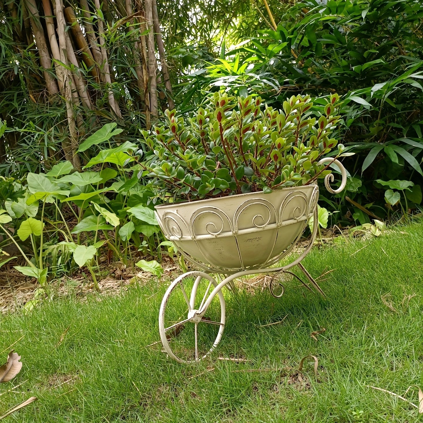 NNETM Vintage Iron Garden Cart Planter with Drainage