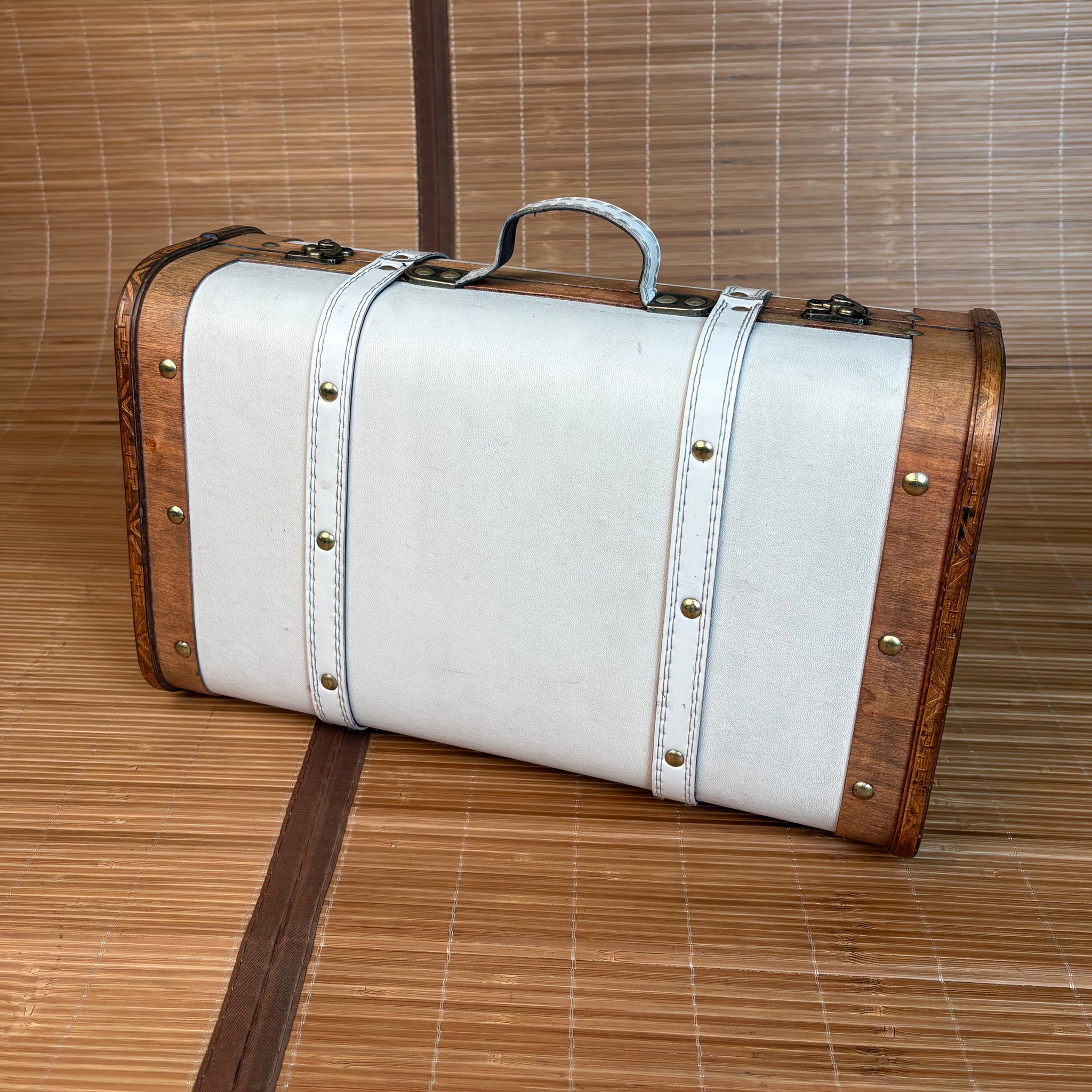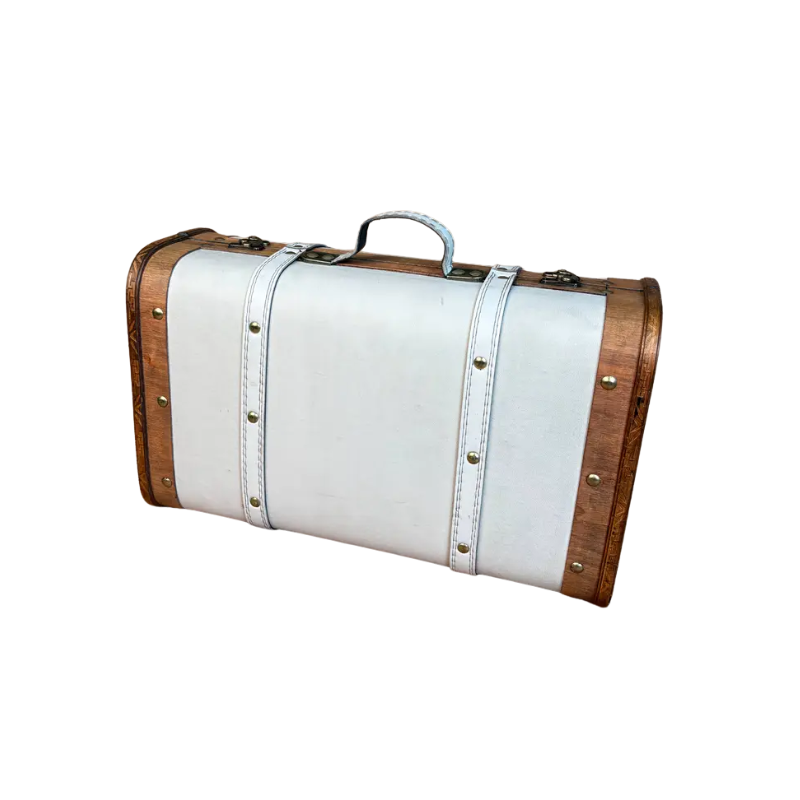 NNETM Vintage Cream Wooden Storage Suitcase with Handle