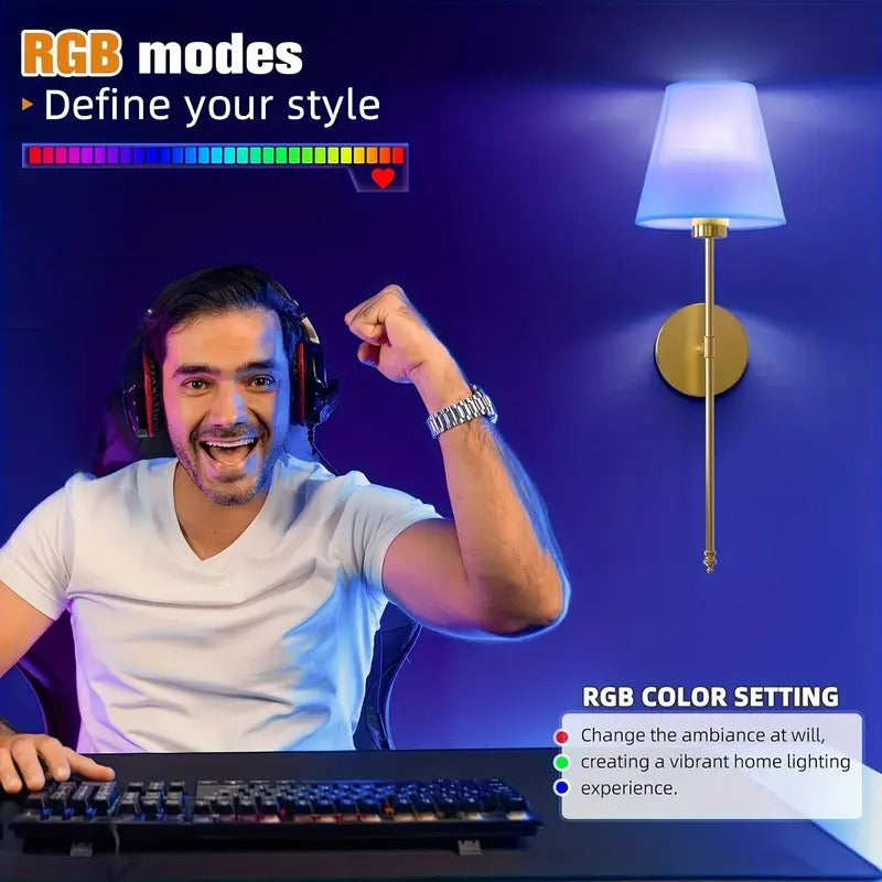 Wireless rechargeable wall sconces with 9 color modes and remote.