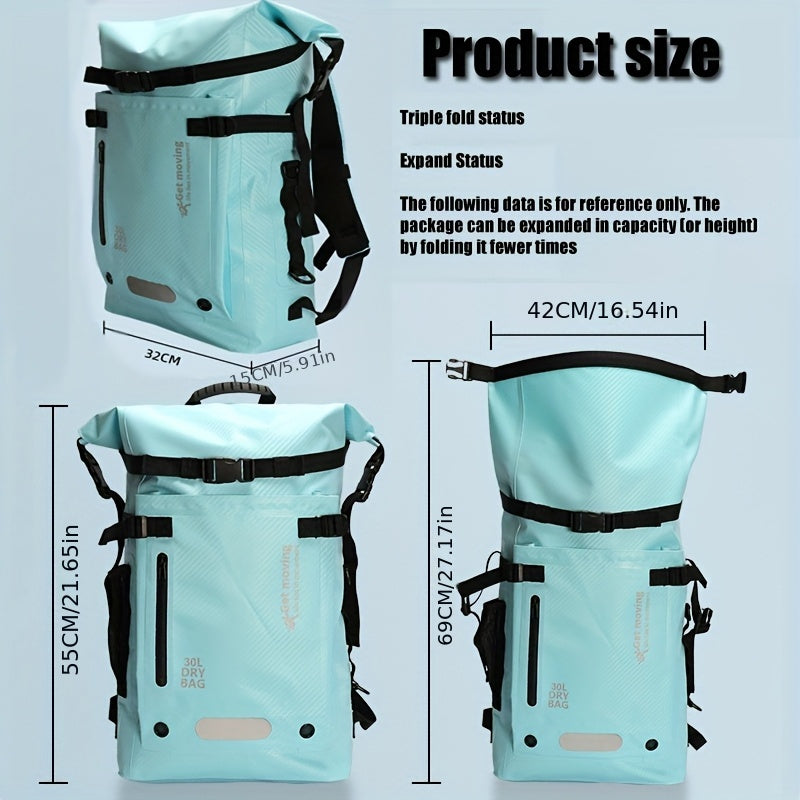 The NNETM 30L Waterproof Backpack in Blue Carbon Fiber is the ultimate companion for your active lifestyle. Designed for functionality and comfort, this backpack offers a large 30-liter capacity with a smart dry/wet separation to keep your items organized and protected. The wathet color gives a fresh and sporty look while the durable PVC material ensures waterproof performance in all conditions.