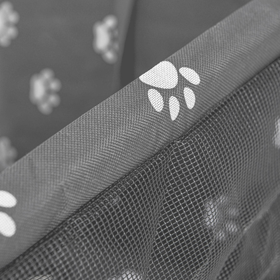 - It is made of 600D oxford cloth and PVC mesh material that protects seats from pet hair, mud, and water. Oxford cloth is non-slip, sturdy, and waterproof, reducing the hassle of cleaning.