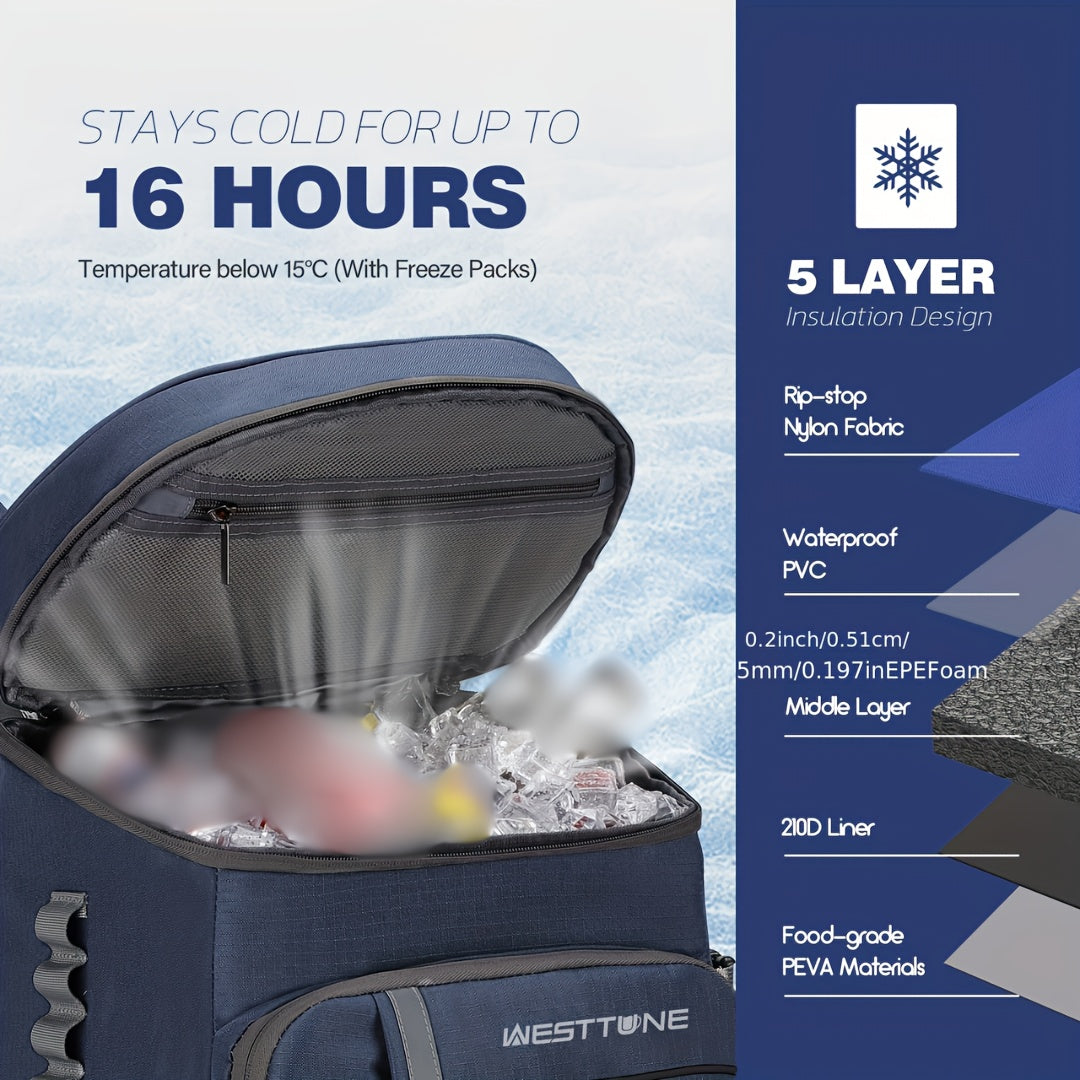 The NNETM 35-Can Blue Insulated Sports Backpack is designed for active lifestyles, built with durable oxford cloth and engineered for convenience and long-lasting cooling. Its multi-layer insulation system keeps your drinks and gear cool, while the spacious interior and multiple compartments provide organized storage on the go. Whether you're hiking, camping, or heading to a game, this backpack delivers unmatched comfort and functionality.