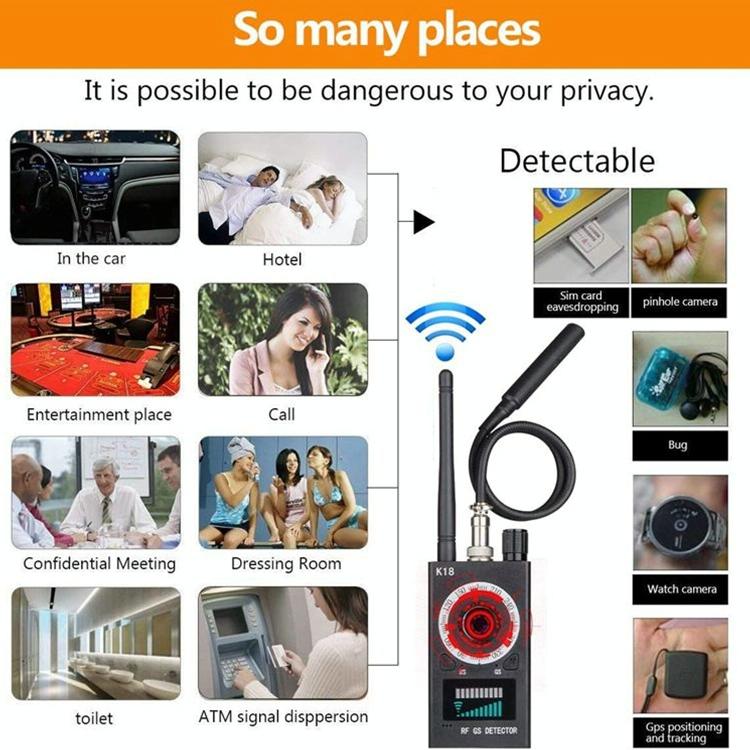 • Compatibility: 1.2G to 5.8G Wireless or Wired Surveillance Cameras, Gps Locators, Car Trackers, Magnetic Suction Positioners, 2G/3G/4G Mobile Phone Sim Card Bugs, Eavesdroppers, and Other Equipment