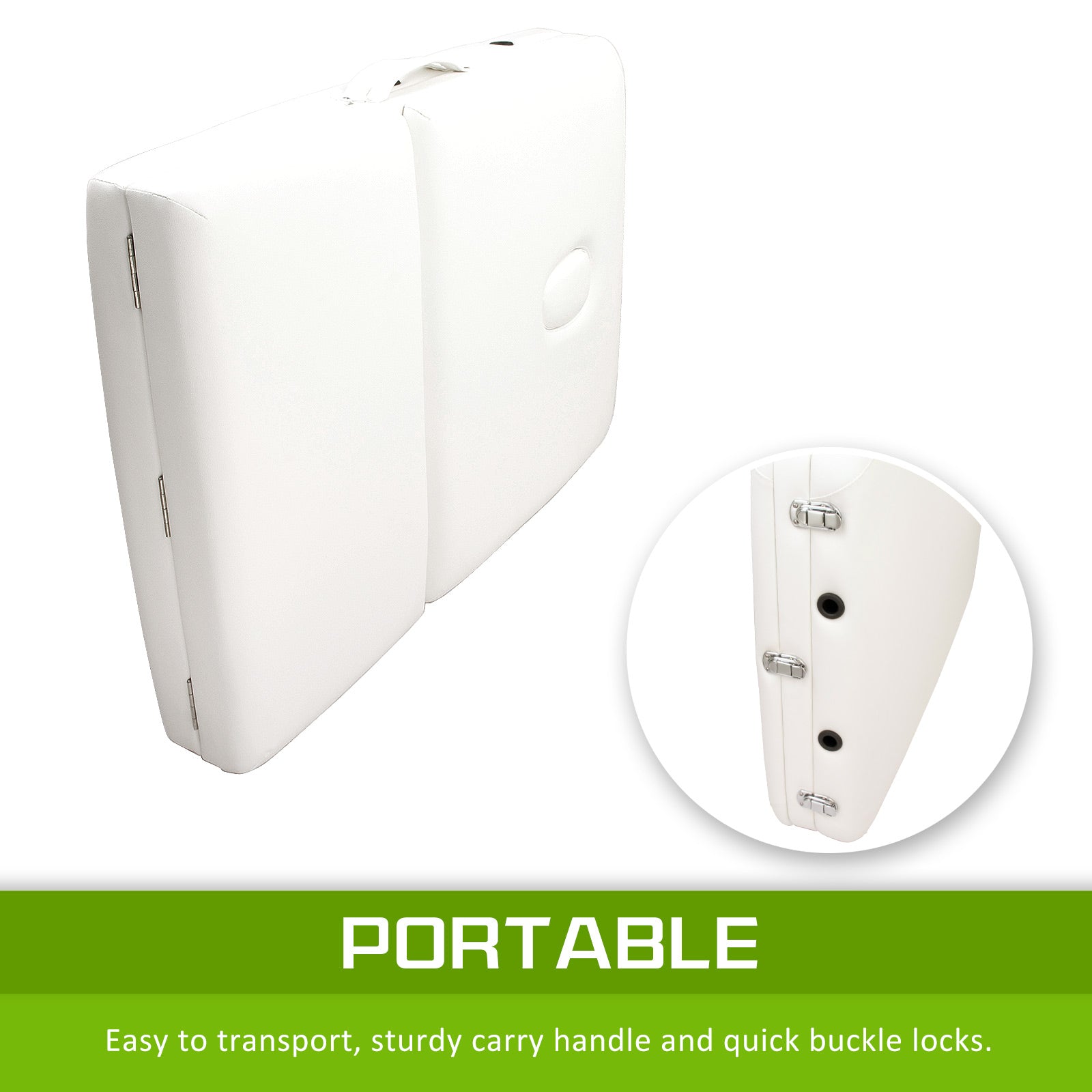 This high-quality professional massage table 70cm wide 3 fold white wooden is not merely a great bargain, but this portable model still comes complete with all functional components.